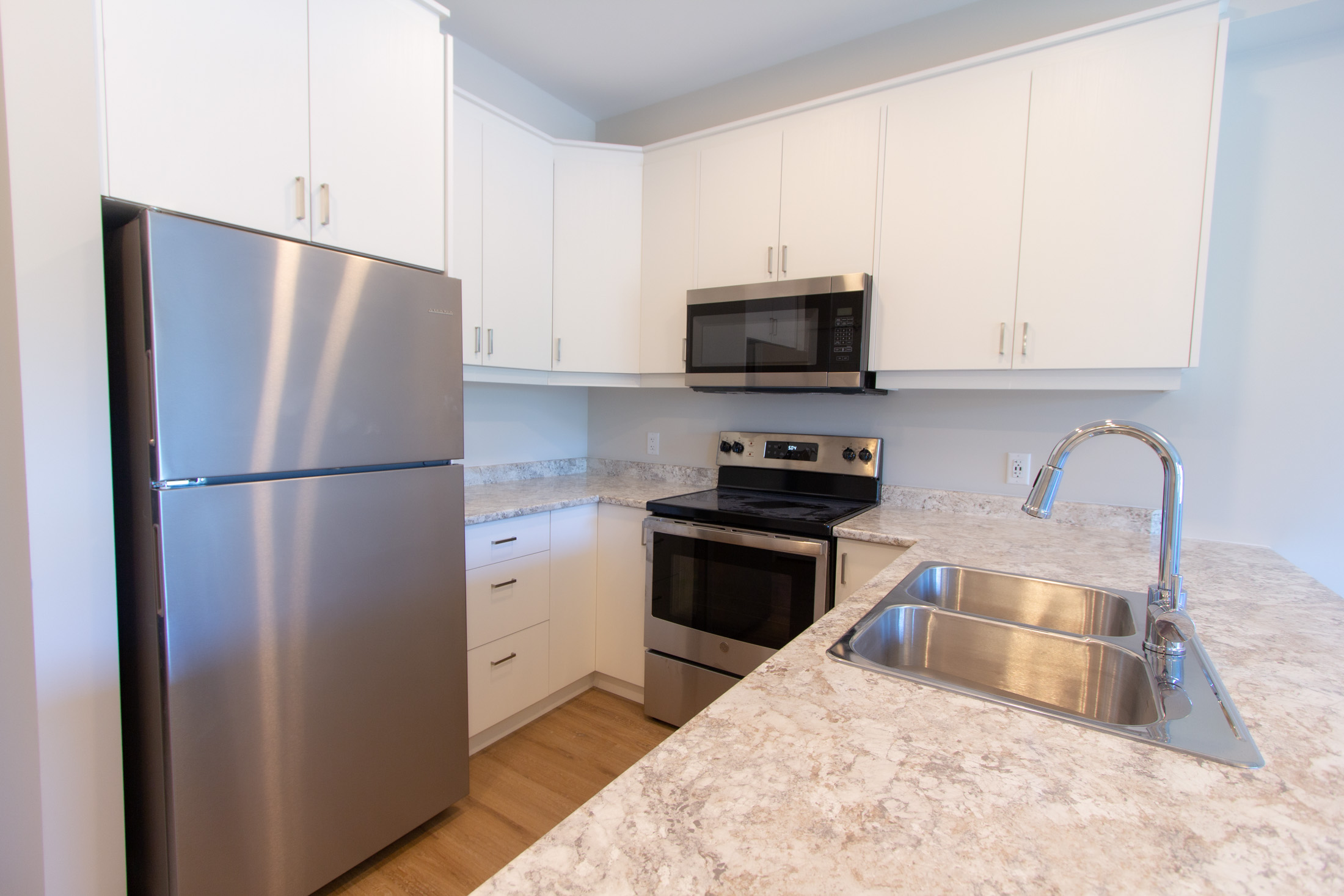Logements concept ouvert très bien ajourés grâce à de grandes fenêtres offrant de magnifiques vues des montagnes. Un balcon privé dans chaque logement vous invite à vous détendre et à profiter des vues de l'environment et du grand air. Choix de 3.5, 3.5 + antre, 4.5 + antre.
