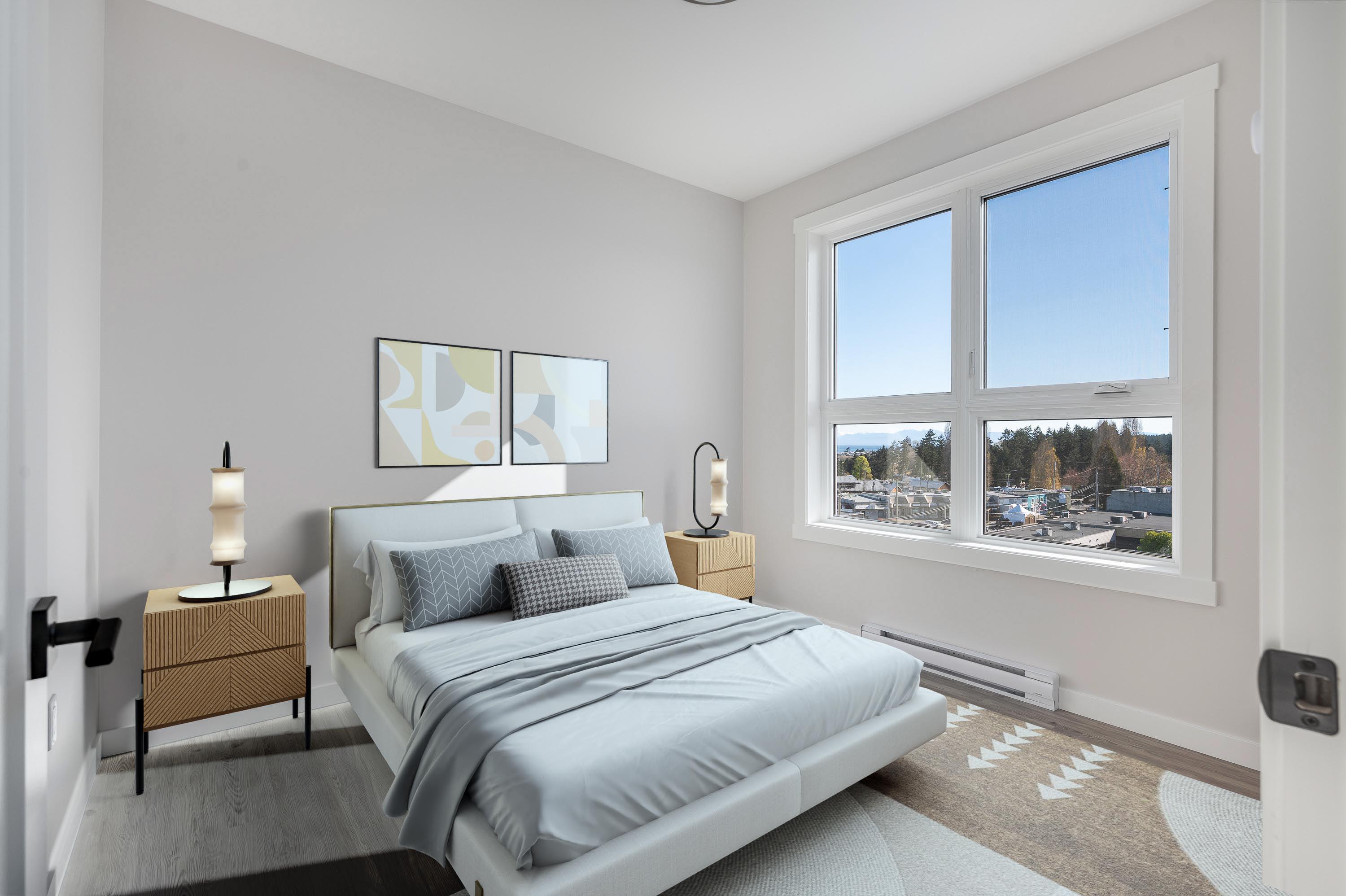 Relax on the open rooftop terrace with BBQ and lounge area. Host gatherings while overlooking the Salish Sea and Coastal Mountains. Enjoy the convenience of charging your vehicle while you get a workout in our onsite fitness amenities room! And sleep in comfort in a climate controlled space that also boasts a suite heat recovery filtered fresh air ventilation systems (HVRs) which filter out more particulates that in turn improves air quality during events such as forest fires smoke. We proudly achieved a Step Code 4 energy efficient rating for this new construction that helps BC reach its Net-Zero Energy-Ready targets!
