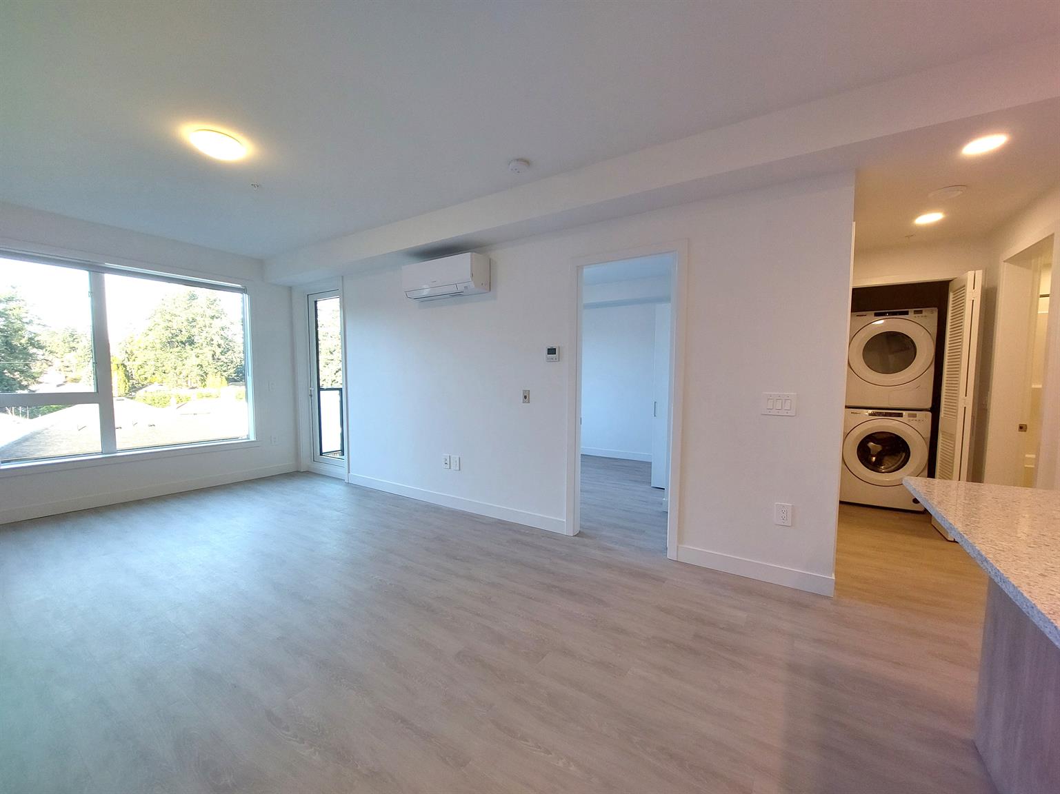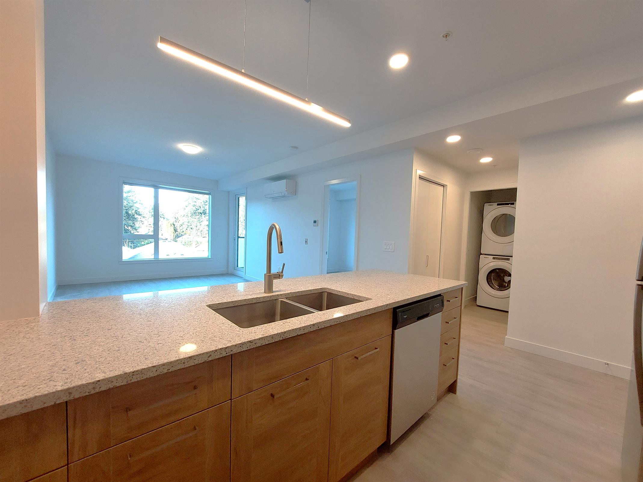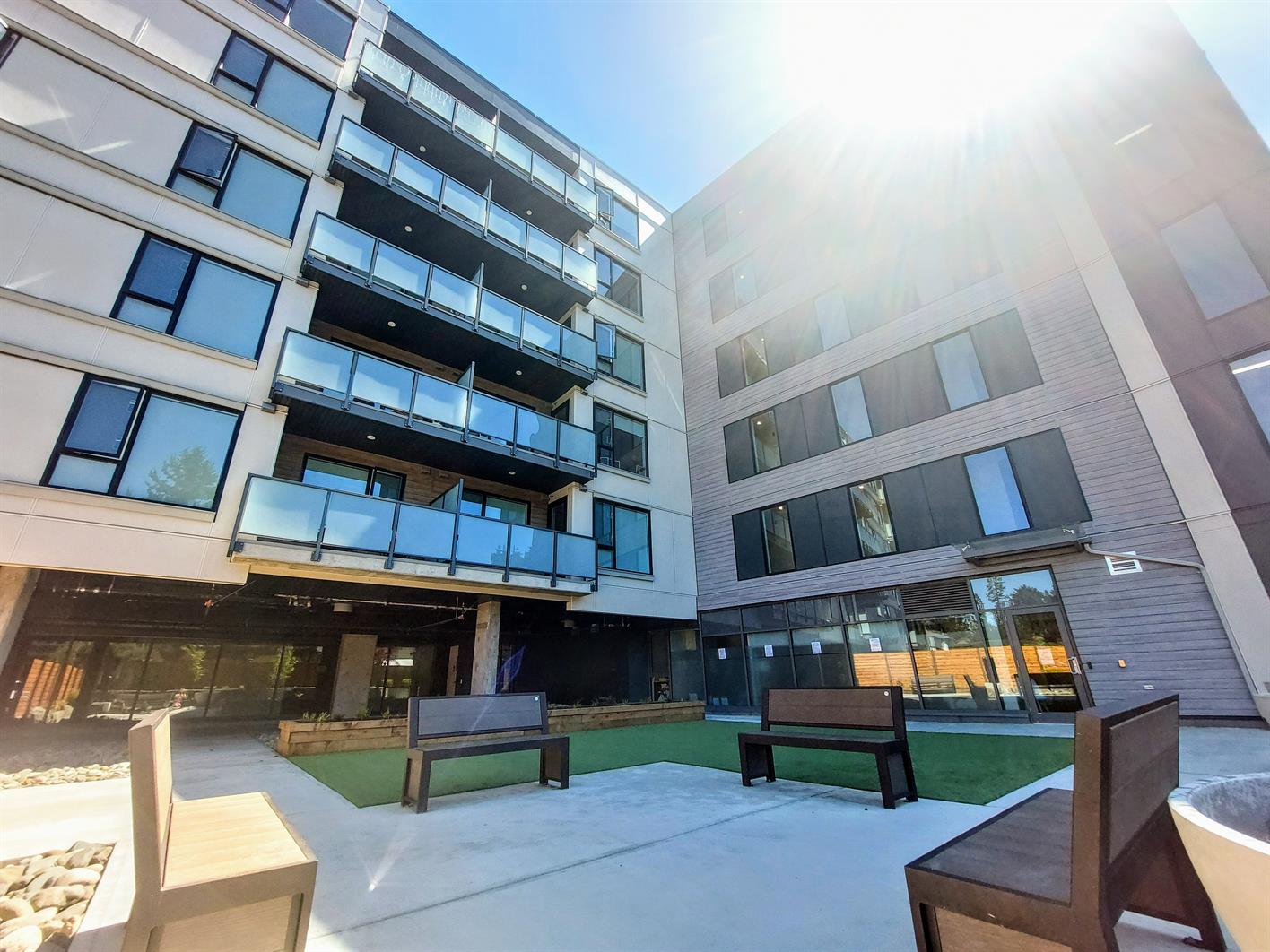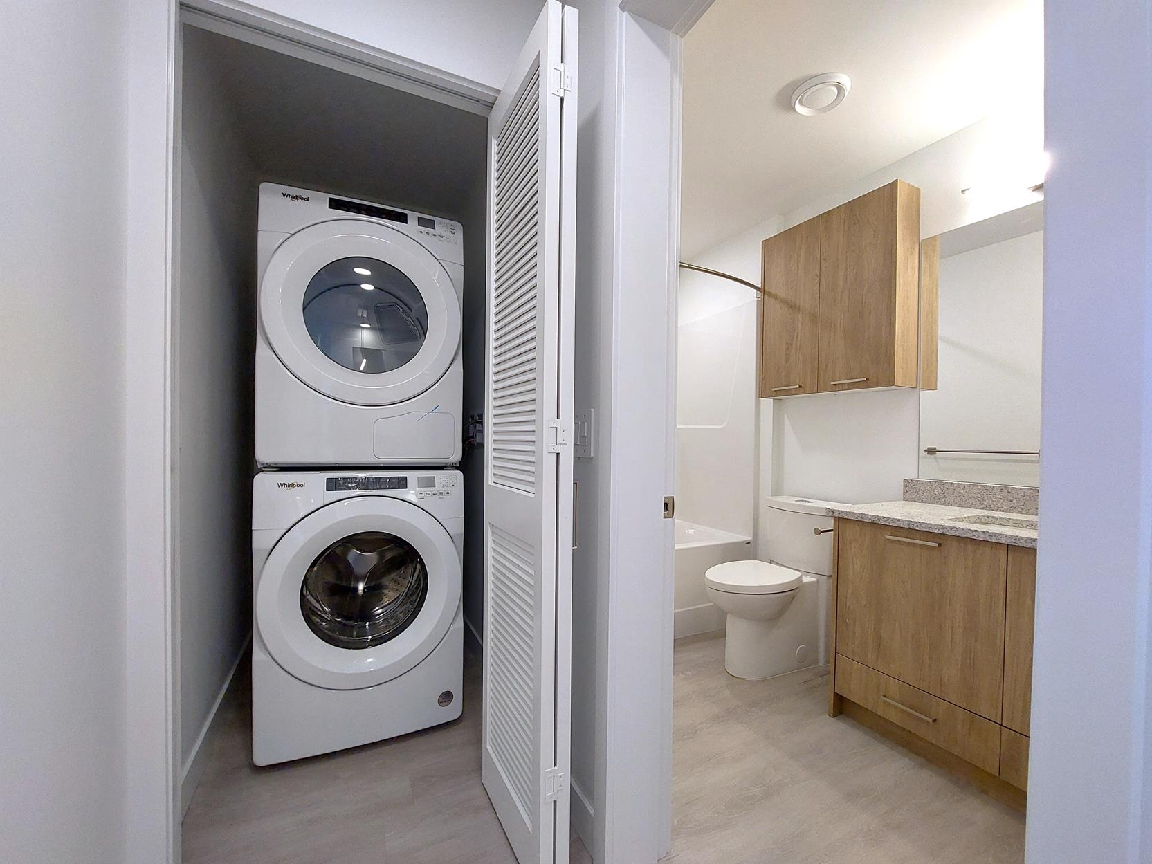 Energy efficient reversible heat pumps with AC and direct air intake provide thermal comfort and clean air throughout all our units. Units also include, private balconies, large size insuite washer and dryers, thoughtfully selected high-end finishes, and walk-in closets. Many floorplans include kitchen pantries, additional storage closets, and den/flex spaces.
