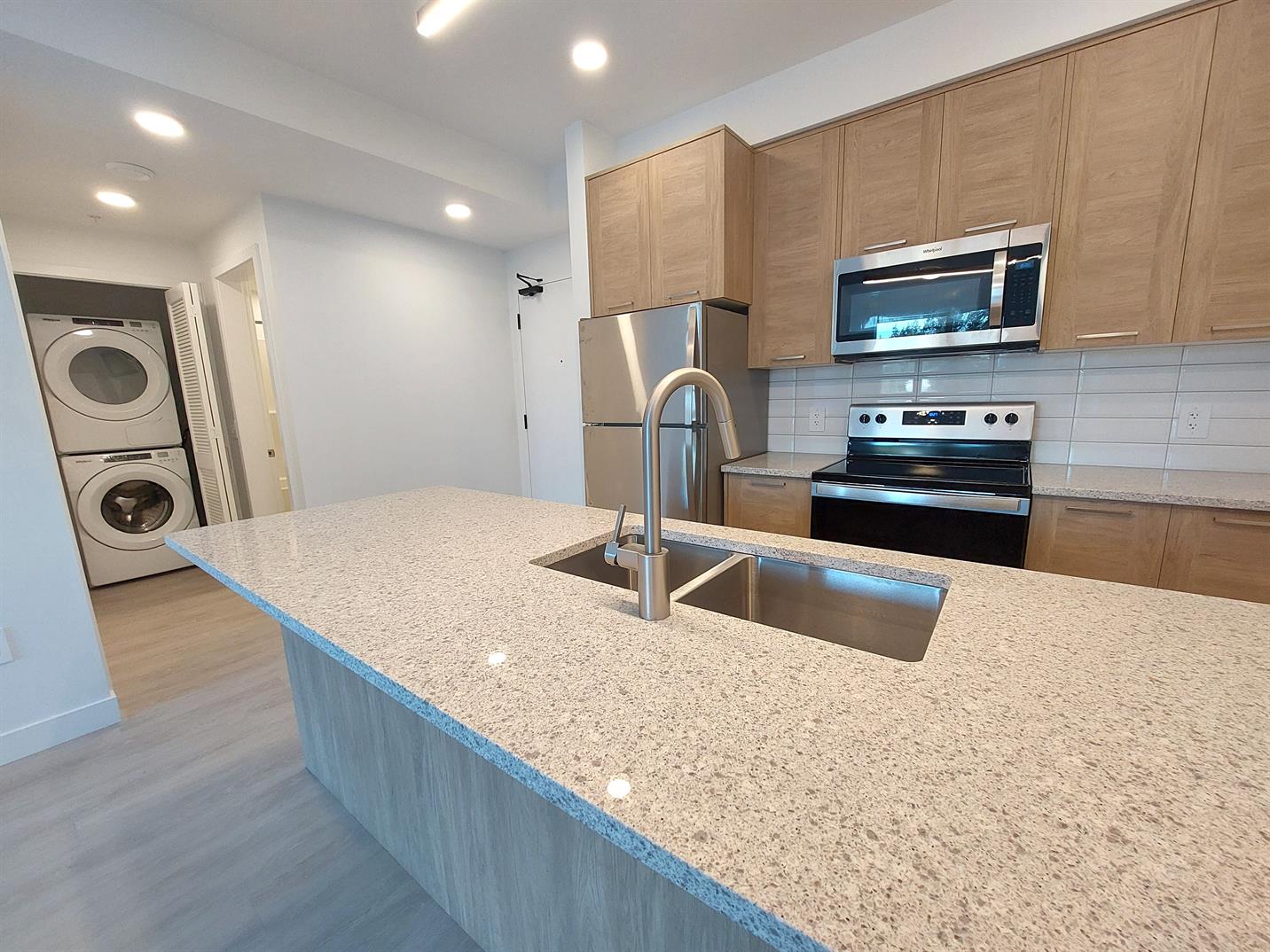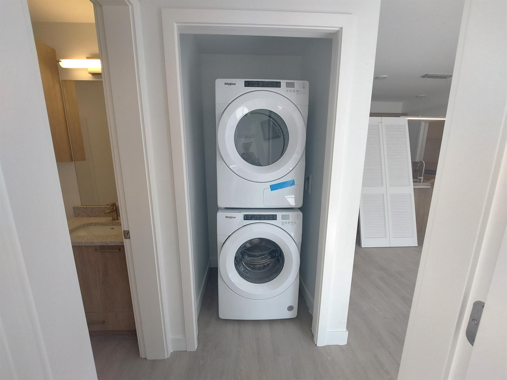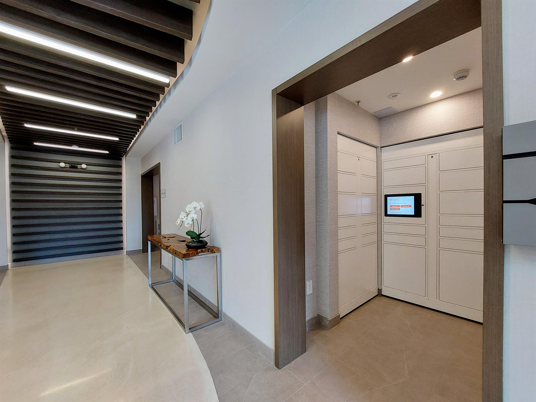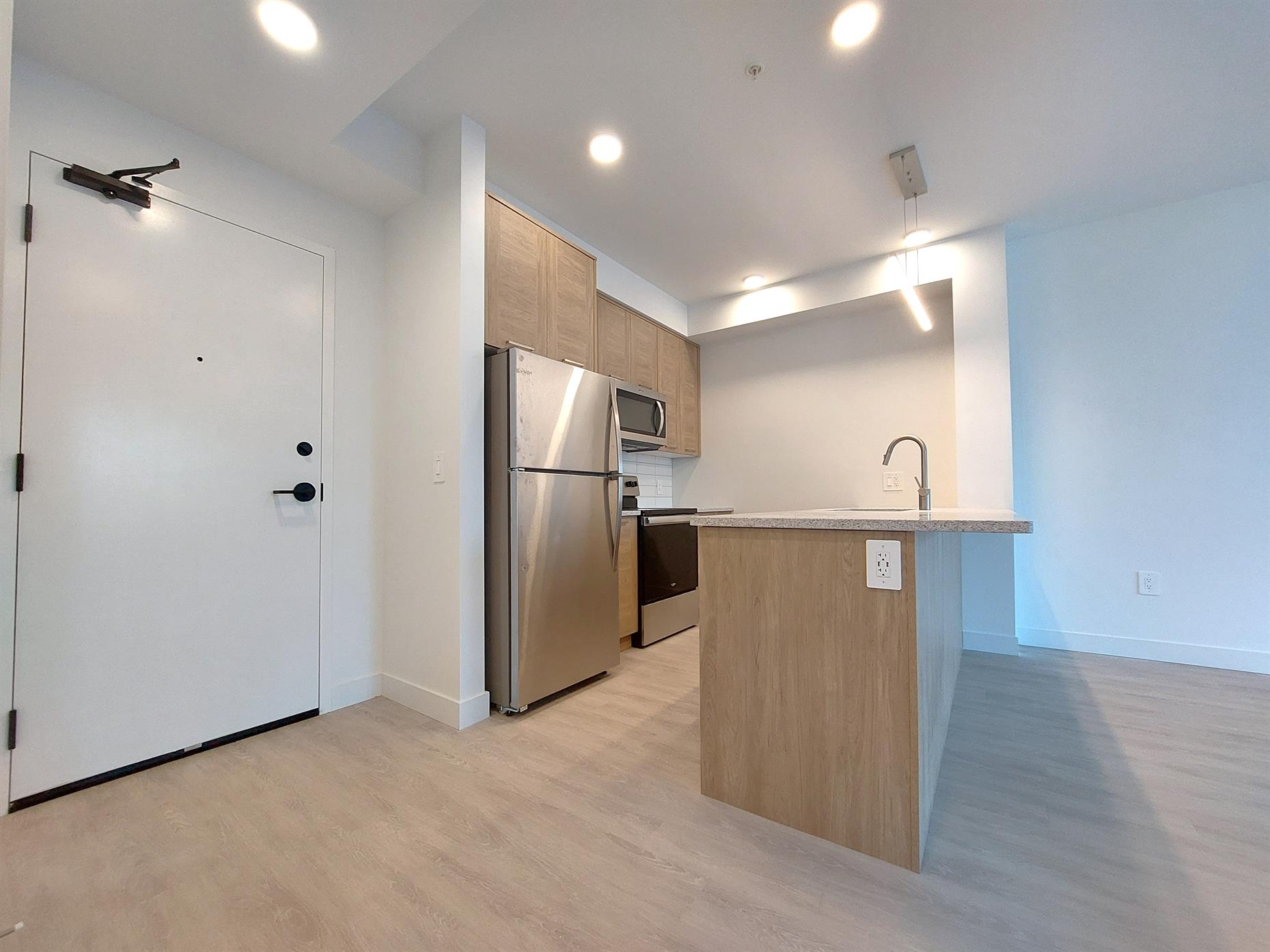Energy efficient reversible heat pumps with AC and direct air intake provide thermal comfort and clean air throughout all our units. Units also include, private balconies, large size insuite washer and dryers, thoughtfully selected high-end finishes, and walk-in closets. Many floorplans include kitchen pantries, additional storage closets, and den/flex spaces.